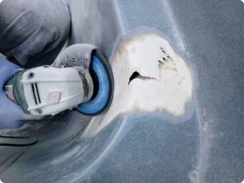 Det går ofta att reparera en glasfiberpool som har drabbats av böldpest. Reparationen gör man genom att slipa bort en del av materialet och därefter fylla igen hålet med gelcoat.