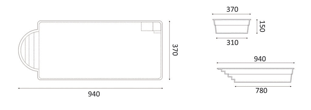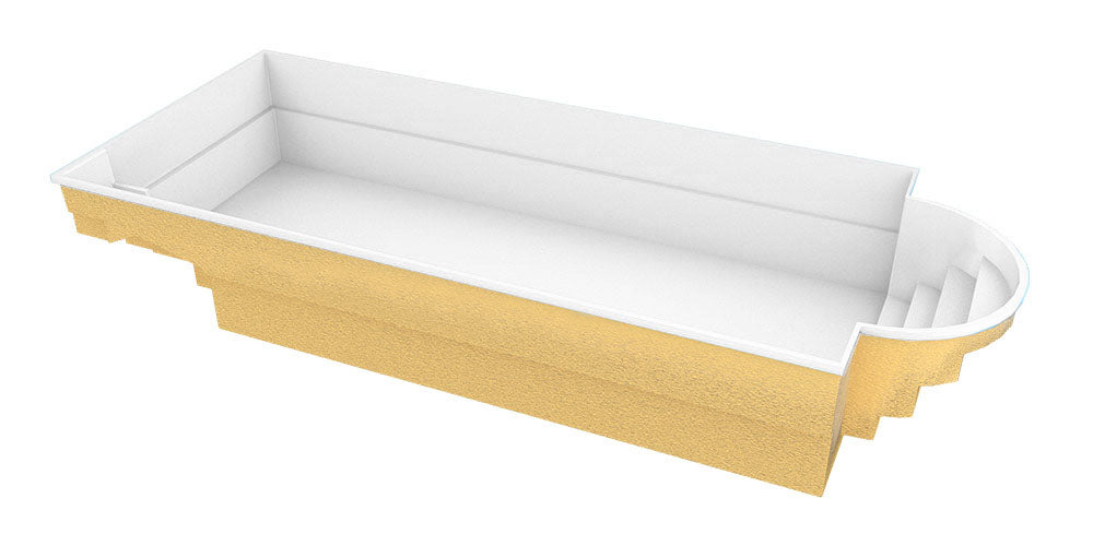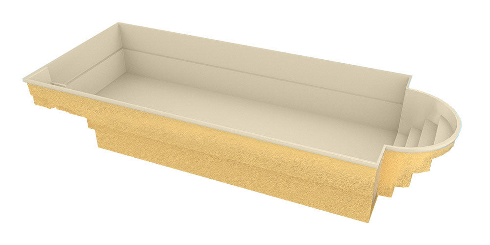 Poolen är 9,40 m x 3,70 m x 1,5 m gjord av förstärkt polyester. På grund av dess dimensioner är det en bra lösning för sportändamål. Den inbyggda sittplatsen är utrustad med massagestrålar sa att du kan koppla av och varva ner. Poolen med avrundade trappor ser bra ut i trädgarden eller på terrassen. Den perfekta lösningen för att organisera speciella evenemang.