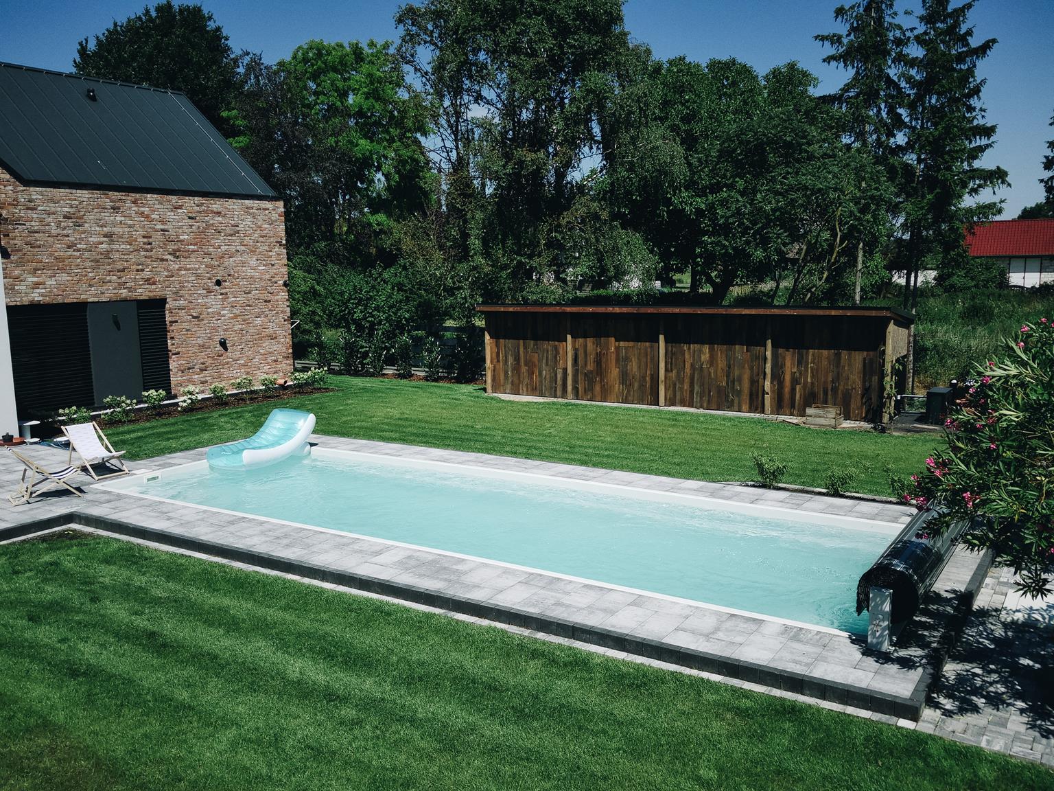 En av de större modellerna 11,25mx3,75mx1,50. På grund av dess längd är poolen perfekt för professionell simning samt tävlingar. Modellen med dubbla trappor på poolens längre vägg ger bekväm användning. Med en exotisk träbräda runtomkring kommer poolen att se vackert ut i trädgården.