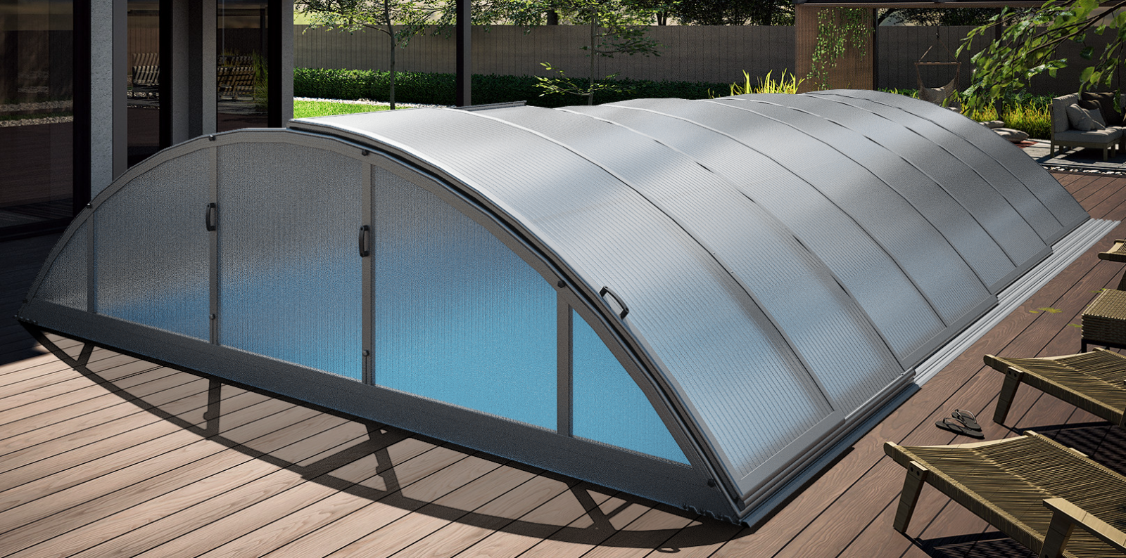 Pooltime erbjuder ett brett och varierat utbud av pooltak som tillgodoser alla preferenser och behov. Vårt sortiment sträcker sig från diskreta, låga pooltak till mer rymliga, höga pooltak, tillverkade av både robust kanalplast och elegant klarplast av högsta kvalitet. Ett pooltak är en strategisk investering som inte bara avsevärt förlänger badsäsongen, vilket gör det möjligt att njuta av din pool under en större del av året, utan också erbjuder ett effektivt skydd mot skräp och smuts. Detta leder till en markant minskning av det löpande underhållsarbetet och en renare poolmiljö, samtidigt som energiförbrukningen för uppvärmning minskar.