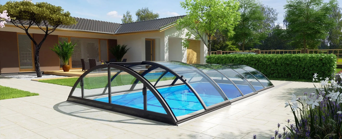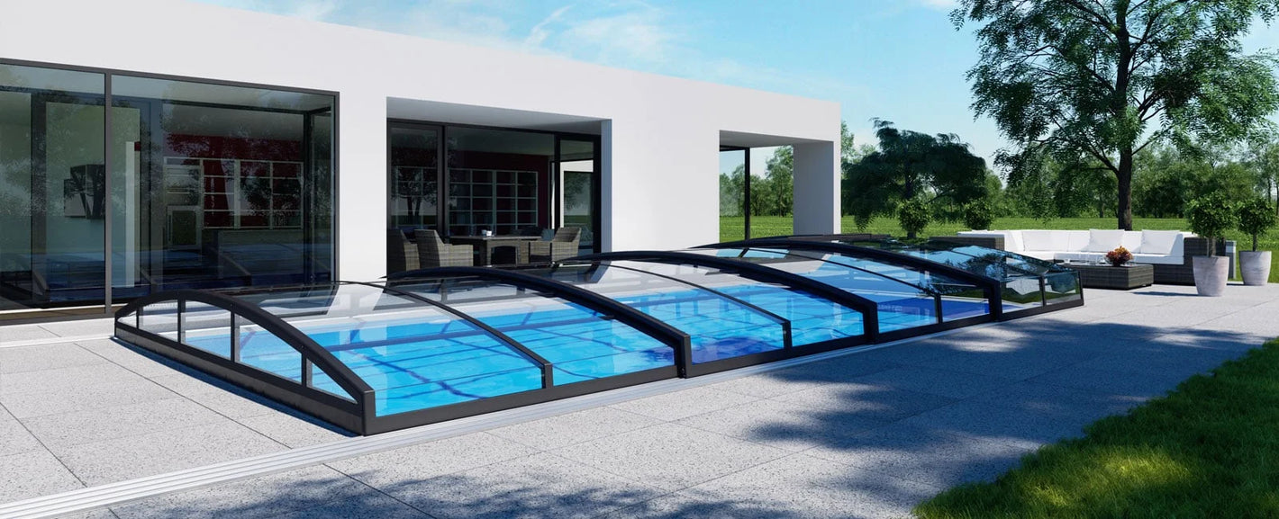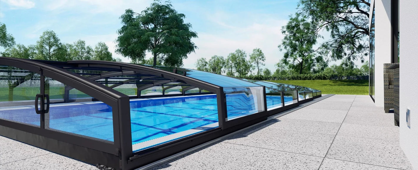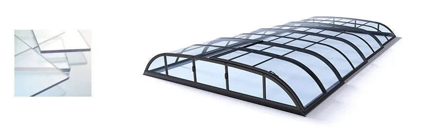 Icon KIT är ett ultra lågt pooltak med klarplast och pulverlackerade antracit aluminiumprofiler. Pooltaket finns i tre storlekar, men går även att måttbeställa. Fördelen med Icon KIT är att installationen av skenorna är enkel. Alla skenor kommer i ett stycke och flera skenor behöver inte monteras bredvid varandra. Pooltaket levereras med klarplast på 3 mm.