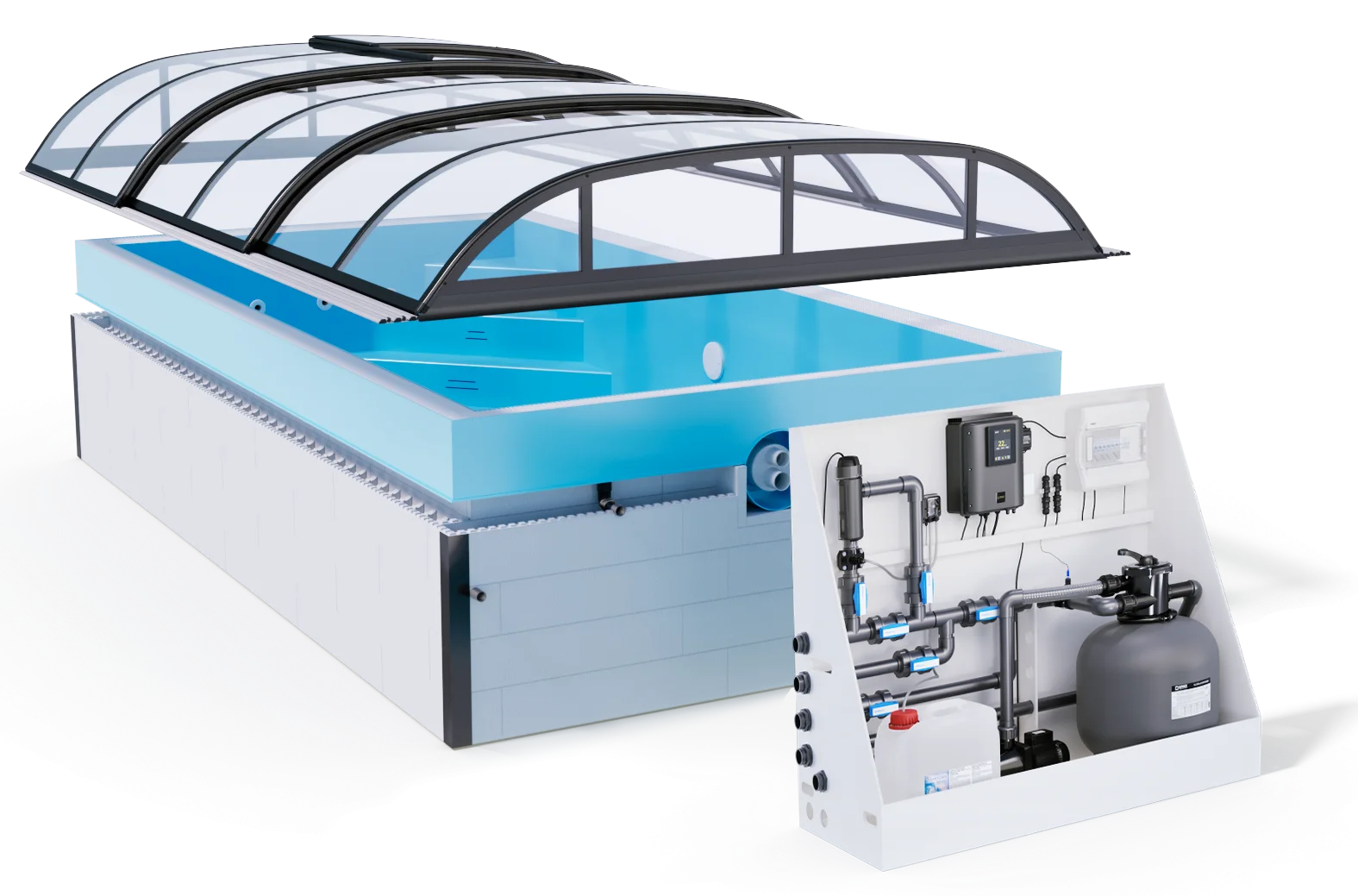 ThermoPP QBIG är en poolkonstruktion som kombinerar fördelarna med thermopoolens konstruktion och PP Poolens exklusiva material att tåla höga vattentemperaturer utan förkortning av livslängden.